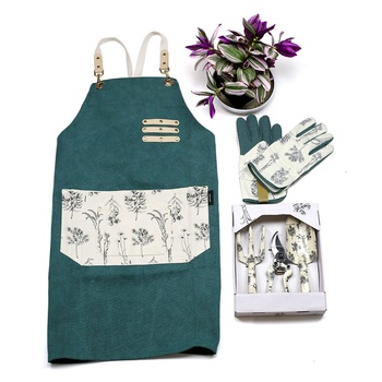 5 adet kürek tırmık makas önlük eldiven çiçek baskı bahçe aleti seti